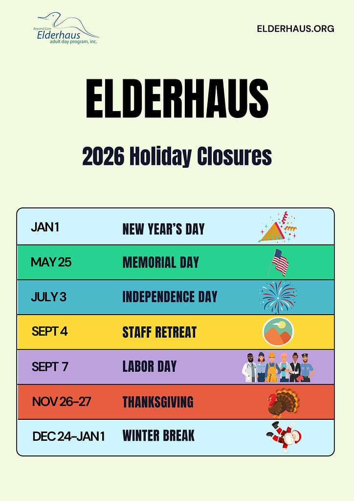 If you utilize Elderhaus’ transportation: We expect that the walkway to your door is shoveled and safe for walking. If the snow or ice on your street makes it unsafe for our vehicles to navigate- we may not be able to pick up your participant.