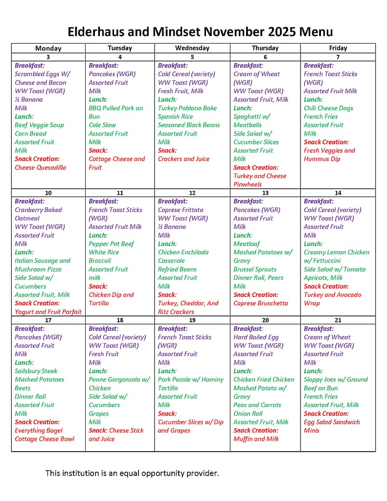 Monthly Meal Menus