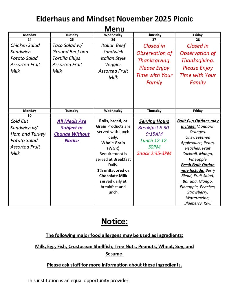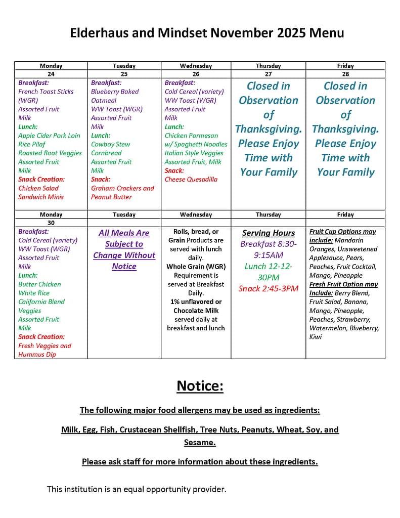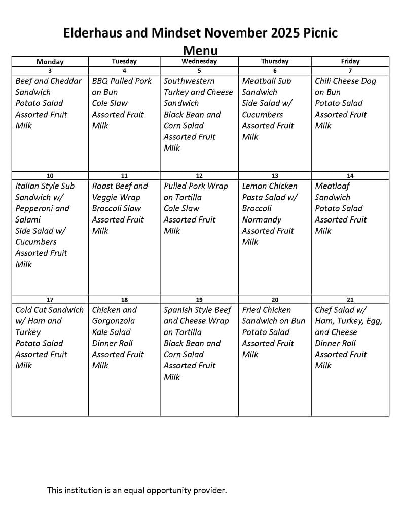 Breakfast and Lunch menus for the month are below.